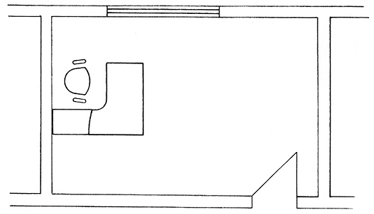 Едно от оптималните положения на бюрото в стаята е показано на схемата. Препоръките на Фън Шуй тук са в няколко посоки. Бюрото трябва да е разположено така, че човек да вижда кой влиза в стаята, без да обръща главата си на повече от 45 градуса.