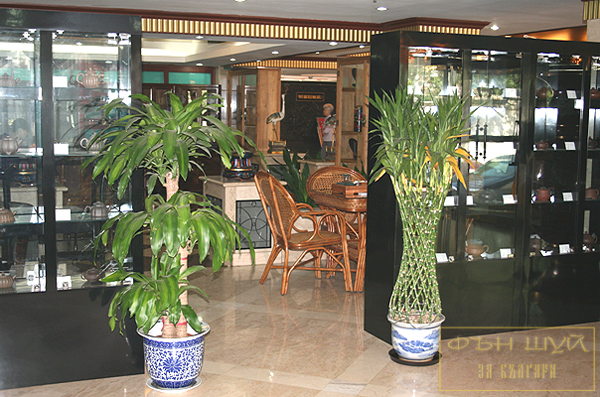 Цветята с остри листа са преграда за клиентите на демонстрационната зала в хотела, като дори и само визуално стесняват наполовина входния портал.