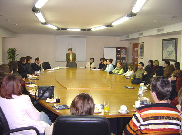 Формата на масата не поставя участниците в противоположни позиции, подсказано е и мястото на водещия. Осветлението е равномерно над всички места и подчертава овалността на масата.