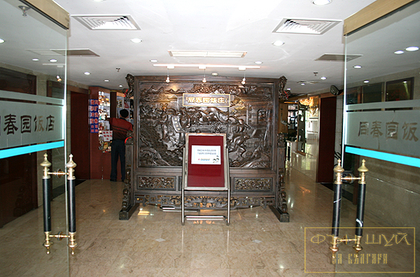 Във фоайето на хотела е сложен висок, обемист, красив и скъп дървен параван, който трябва да бъде заобиколен, за да се влезе към рецепцията и ресторанта. Това е преграда за влизането на Ци.