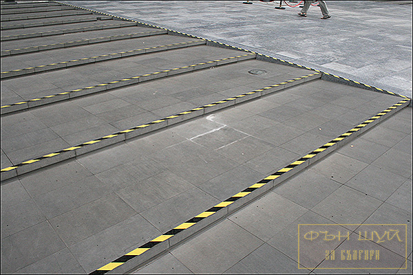 Тези външни стъпала пред входа на музей са с неправилна пропорция за удобно качване (голяма ширина и малка височина), което създава предпоставки за спъване при недостатъчно внимание, но положителното е това, че са сигнализирани добре, както и рампата за достъп на хора с увреждания в съседство.