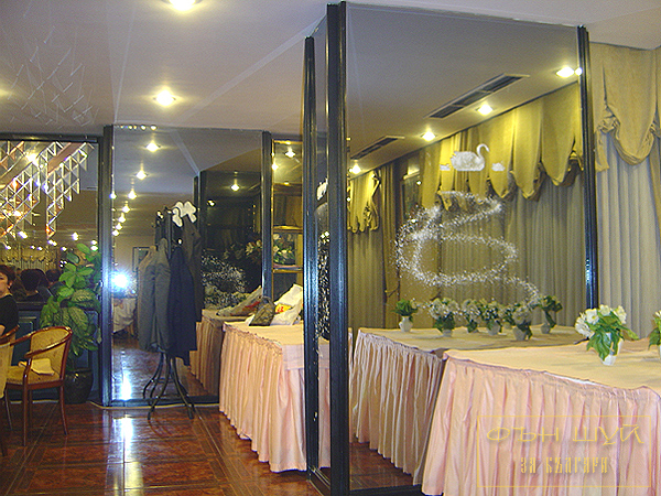 Големите масивни колони в ресторанта са облечени с огледала, които ги карат визуално да изчезнат, променят енергетиката им чрез отнемане на Ша Ци от ръбовете и прибавят визуално пространство в целия обем на помещението.