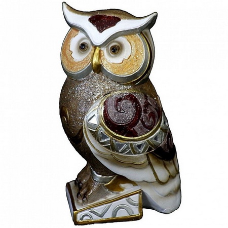 Фън Шуй - богато декорирана статуетка - пластика от полирезин, аксесоар за бюро - Сова - оригинален и особено подходящ подарък за мъж, жена, ученик, юбилей, пенсиониране или за бизнес подарък! Совата е символ на мъдростта, знанието и ерудицията. Статуетката на сова се използва за активация на учебния процес и повишаване работоспособността на хората на умствения труд. Счита се, че помага на притежателя си да предвижда бъдещето и да вижда всичко, скрито от човешките очи. Совата се смята и за мощен символ на Богатството. Тя благоприятства личностното израстване, което е не по-малко важно от финансовото благополучие, поощрява развитието на умствените способности, помага в натрупването на знания, усилва духовното развитие. Смята се, че присъствието на Сова усилва така наречения “късмет в ученето”. Много Фън Шуй специалисти смятат, че Совата създава около себе си своеобразно “енергийно поле на благополучие”, в което притежателят й винаги чувстава душевен комфорт и може успешно да се развива в избраната посока.