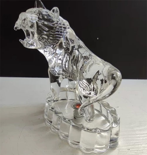 Фън шуй талисман за късмет и пари. Стъклена статуетка на Тигър. Сувенира идва в транспортна опаковка. Размер 12см на 3см на 8см.